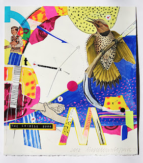 I like to think that my artworks are a quirky self portrait of the recipient, made up of images that are symbols and significant things meaningful to them. I often ask my client such things as what are their (interests, favorite places/holidays, favorite plants/flowers, sporting teams, pets, nick names, their family dynamic, occupation, heroes or anything else you or I can think of!) I then go through my collection of vintage books and gather the pictures and then arrange them into a meaningful composition often with gouache paint. These works take me days (sometimes longer) to create, so it may take me a couple of weeks to get to you, but I can often prioritize orders if you require them sooner.